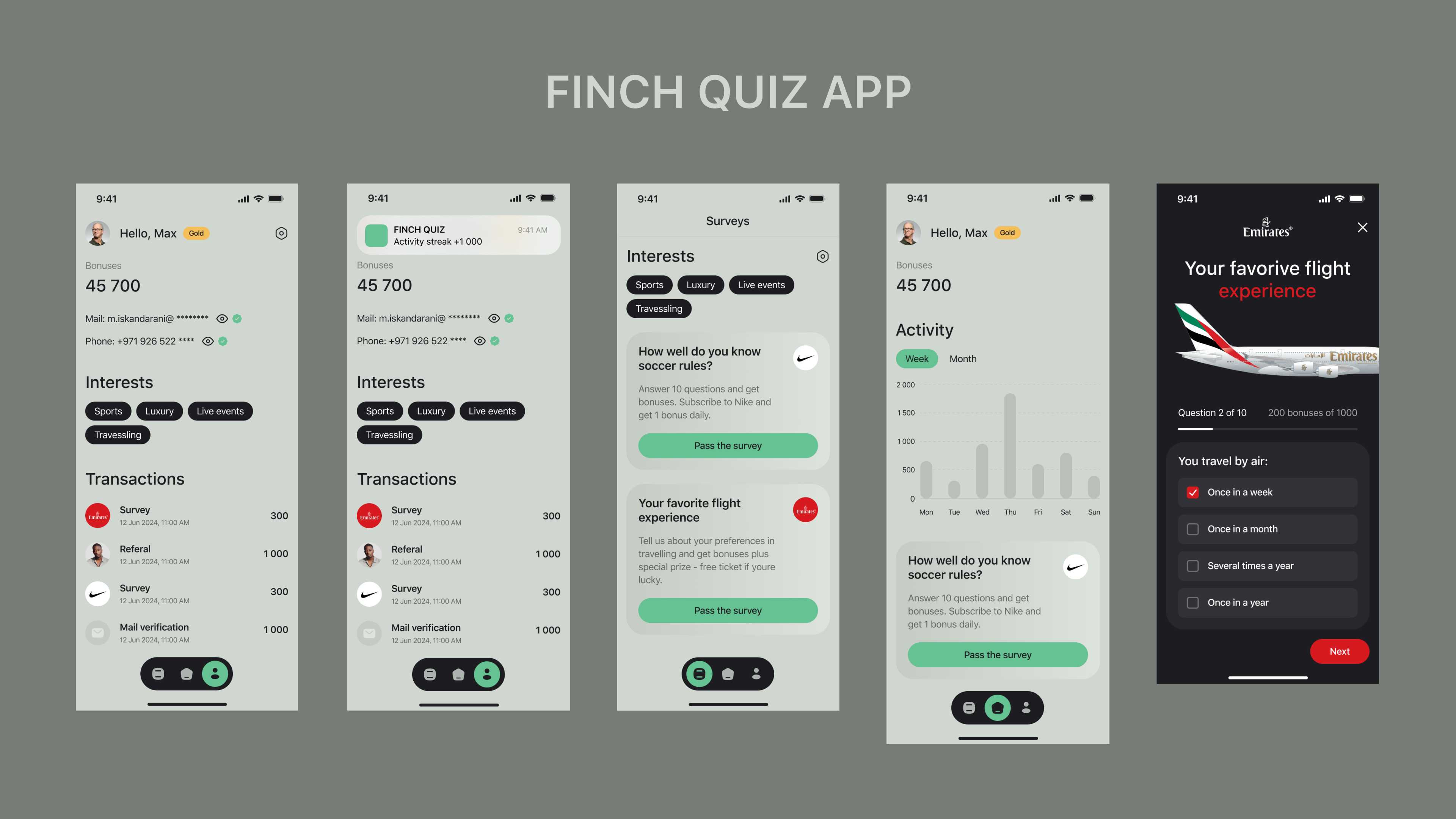 One of the latest cases launched by Finch on the platform is an app where brands can conduct surveys, and users earn points by completing them.