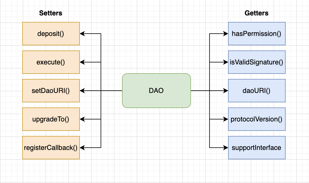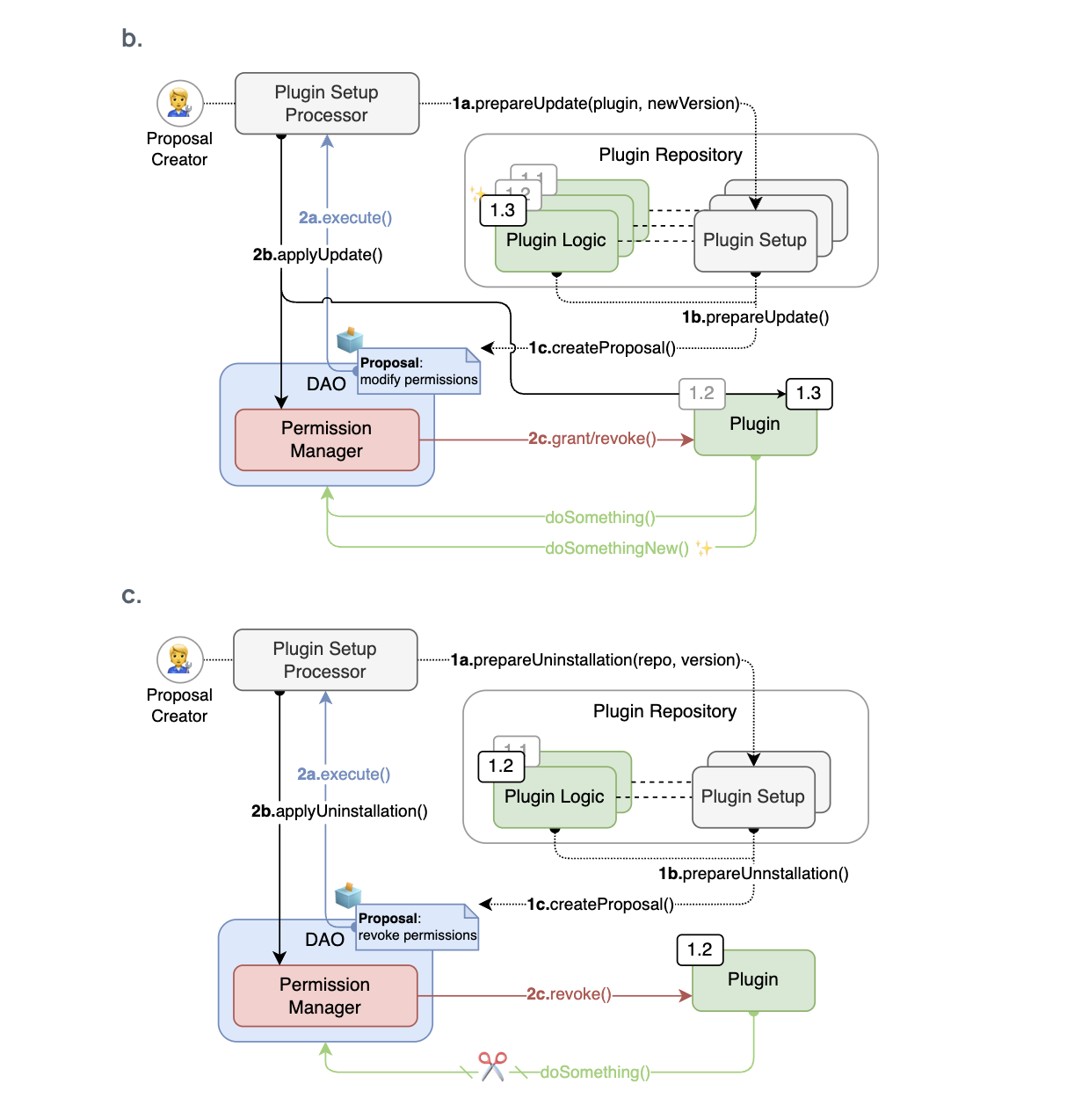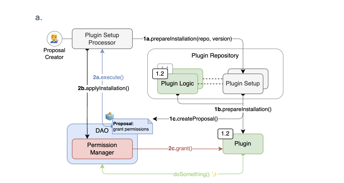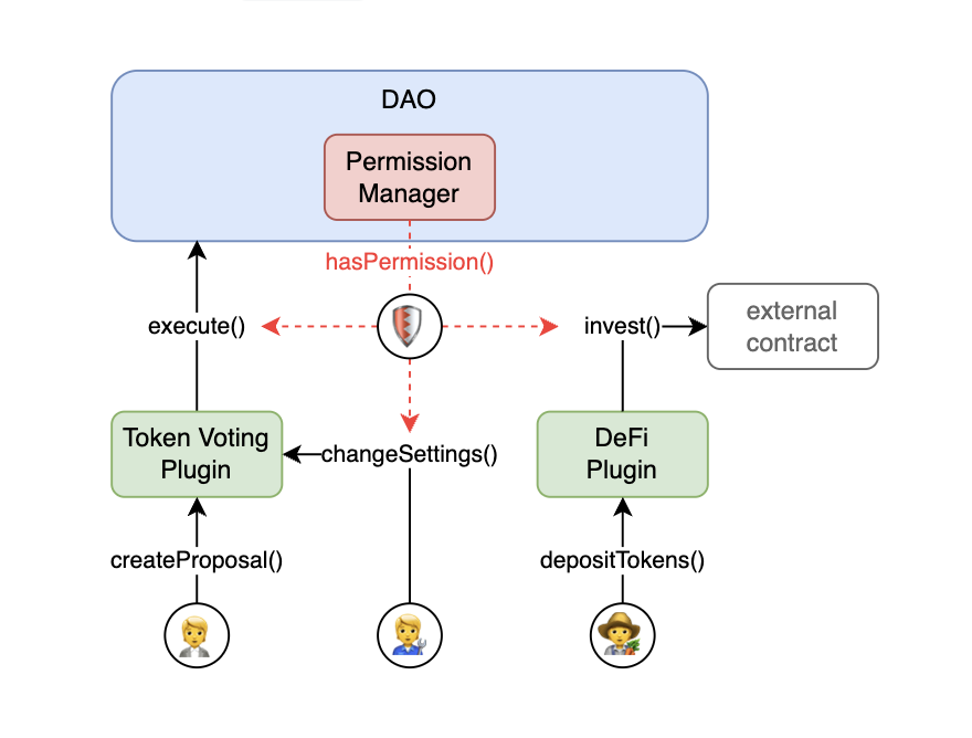 - Permissions: Defines relationships between plugins, the DAO, and other addresses;