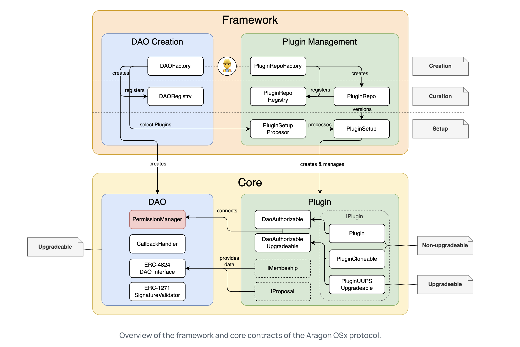 Disclaimer! This article discusses version Aragon OSx 1.3.0 of the protocol. Subsequent versions might have minor changes in the implementation of specific features, but at the level of the basic architecture, everything should work the same way.