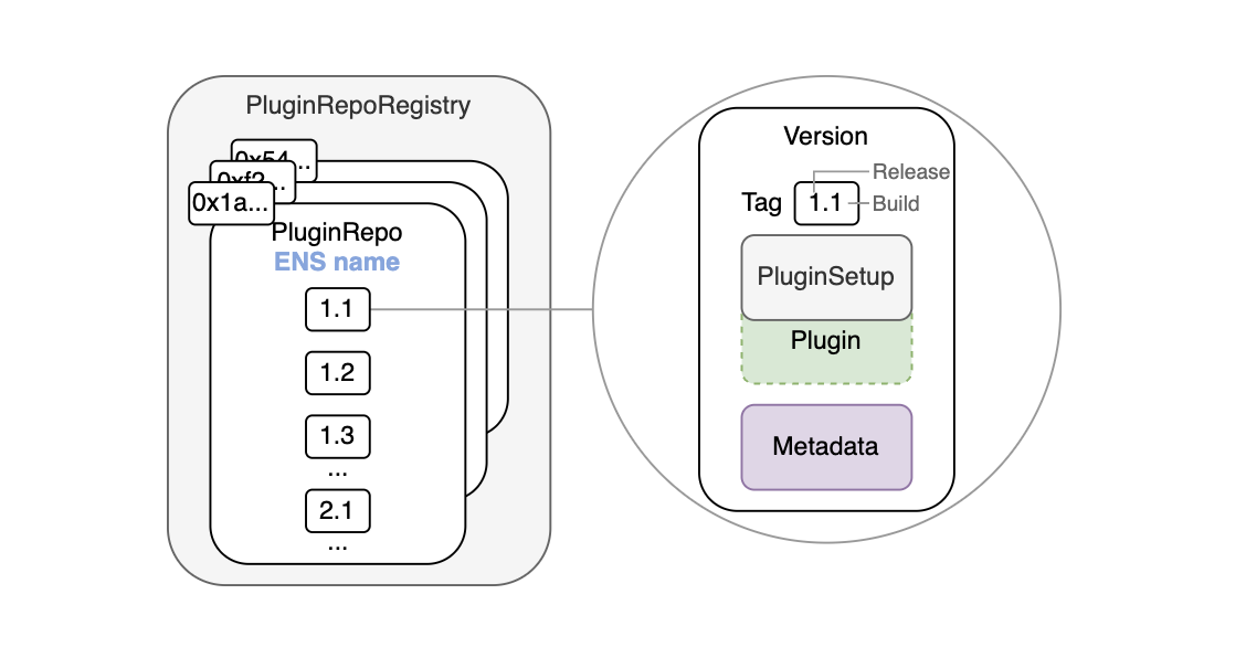 - Plugins: Contain the custom functionality of the organization, managed through on-chain repositories (version control).