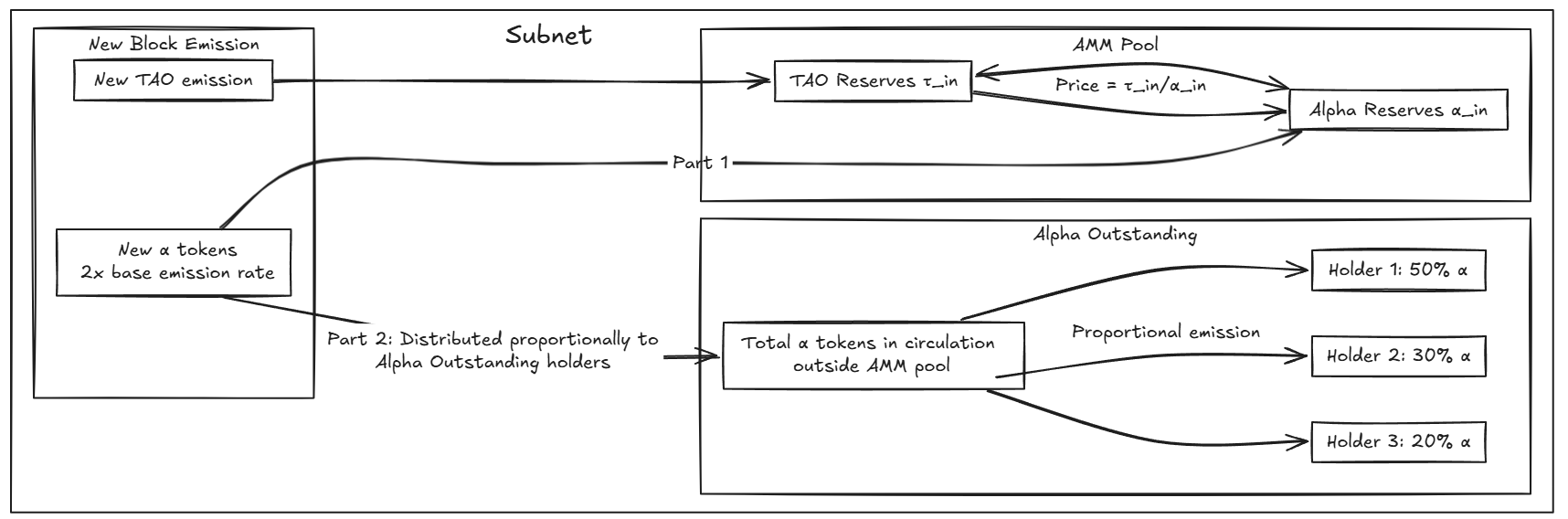 Then all holders of the subnet token — miners, validators, stakers, and the subnet creator — can choose to exchange their reward tokens back into TAO, thereby realizing a profit.