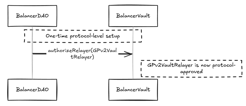 1. Protocol level: GPv2VaultRelayer is authorized in Balancer as an official relayer through a Balancer DAO vote (this has already been implemented at the protocol level).