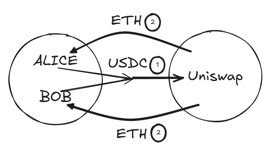 Let’s say a user wants to sell 100 USDC for at least 0.05 ETH: