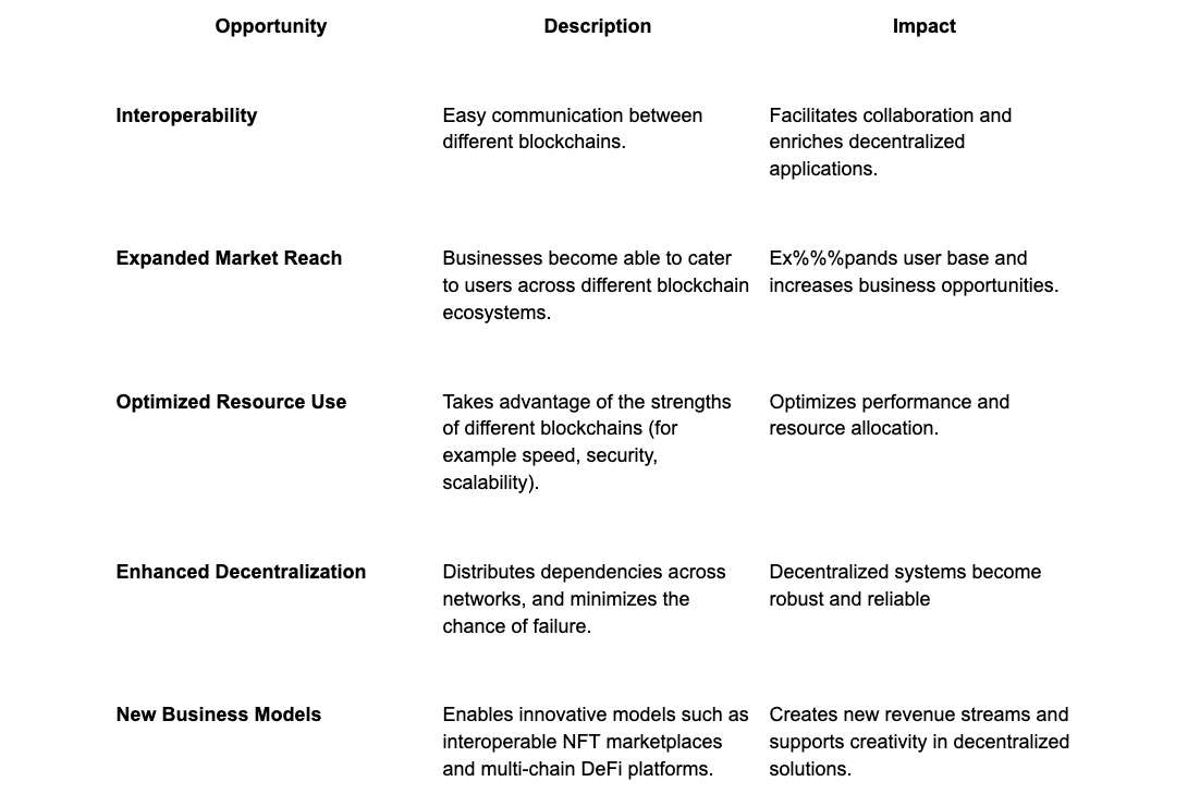 Businesses can get the benefit of cross-chain smart contracts easily. Firstly, a Cross-chain contract expands market research and optimizes the use of resources by using the strengths of more than one blockchain. Moreover, it creates new business opportunities like multi-chain DeFi platforms or interoperable NFT marketplaces