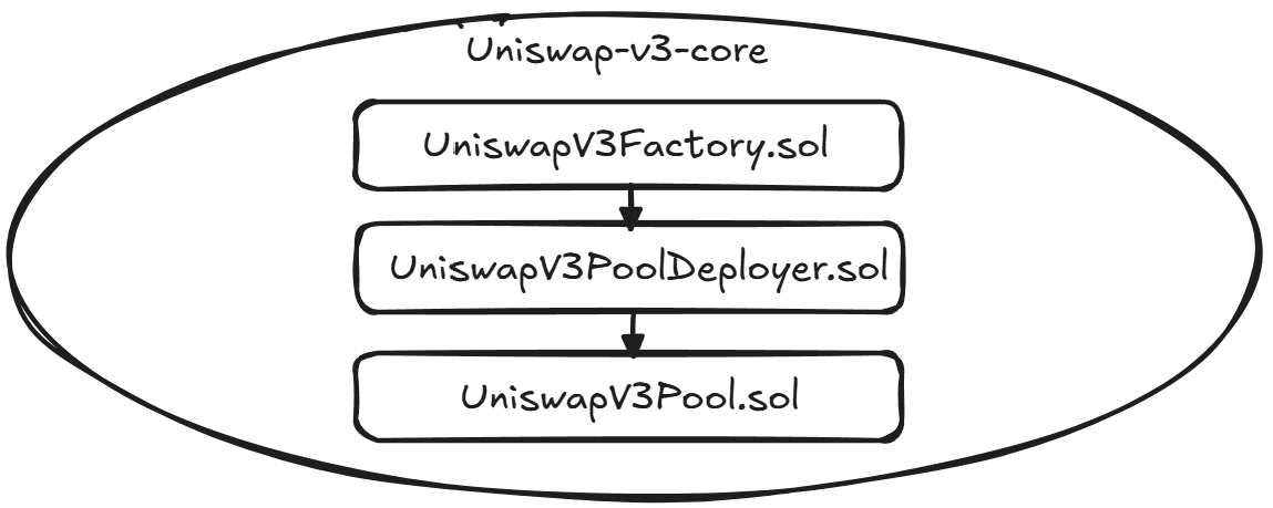UniswapV3Factory.sol is responsible for creating and managing swap pools with different fee parameters. The factory smart contract tracks all existing pools and their addresses. When a new token pool is created, the factory deploys a new UniswapV3Pool.sol smart contract through the helper contract UniswapV3PoolDeployer.sol.