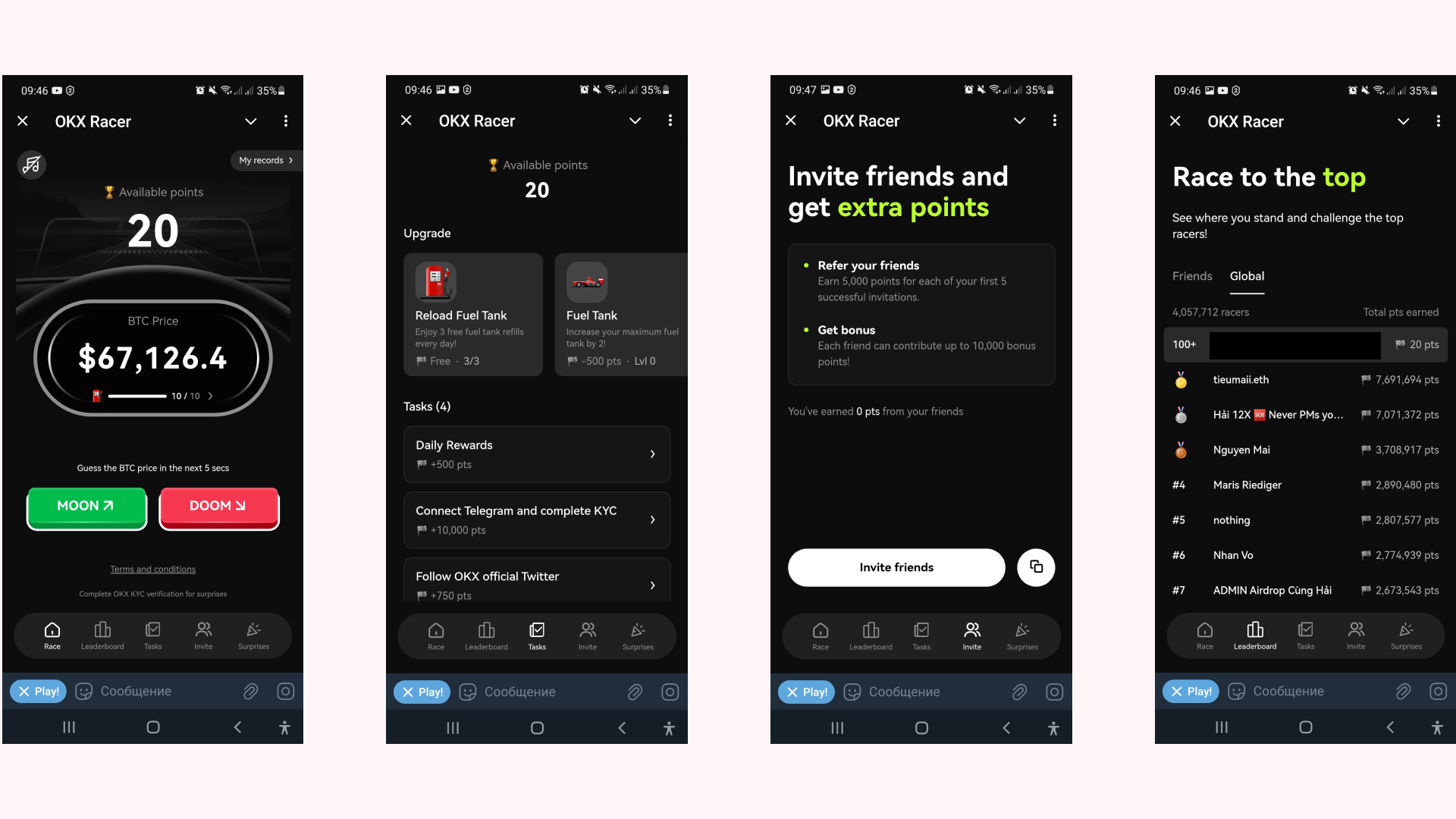 Any app should include at least the following essential features: a task board, a referral system, and a leaderboard.